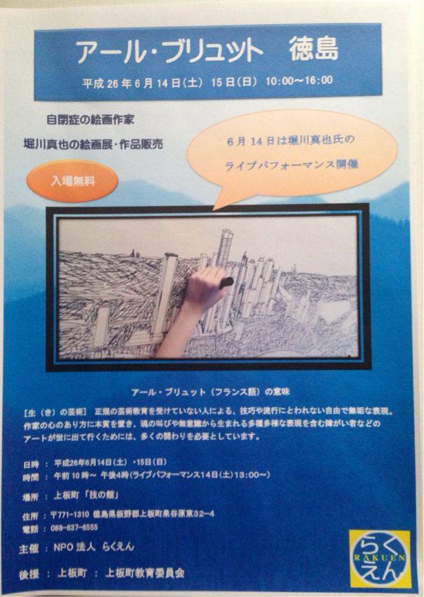 「アール・ブリュット徳島」 自閉症の絵画作家 堀川真也氏の絵画展を開催致します。