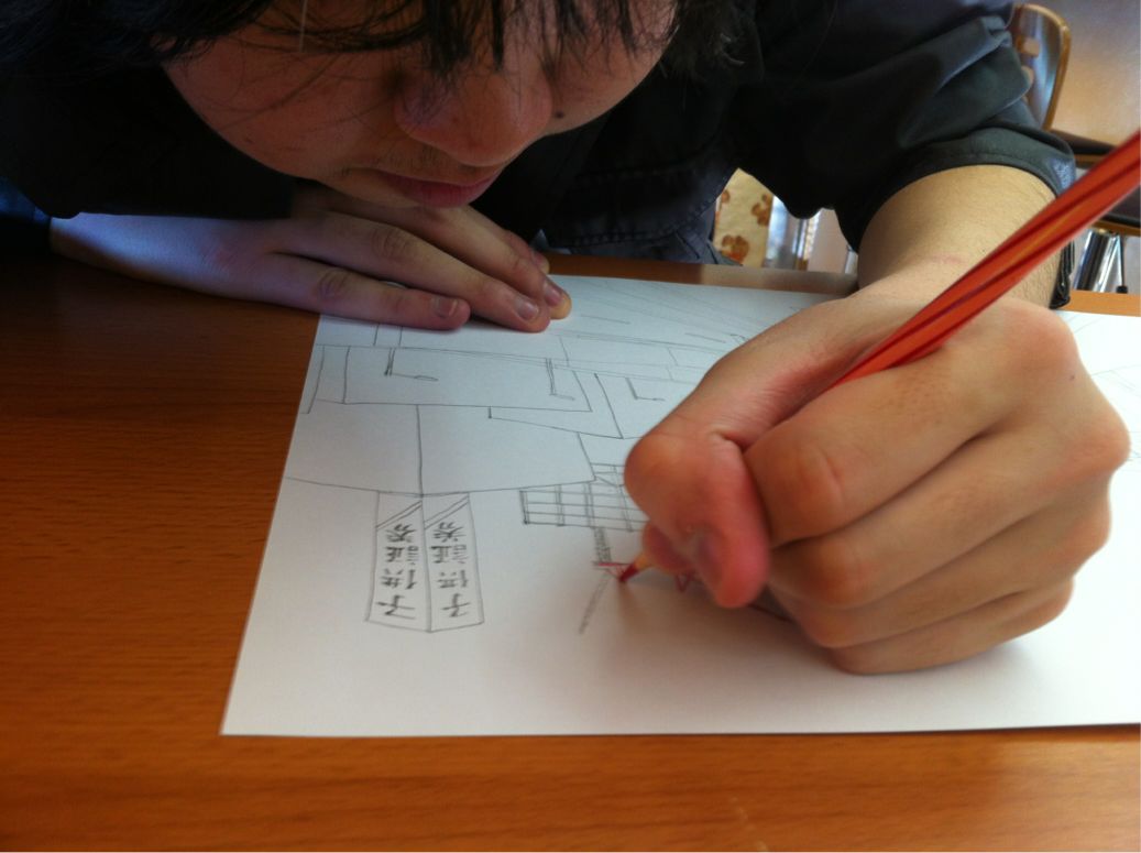 堀川さんは小学2年の時に中度の自閉症と診断された。長時間座っていることが苦手だが、見た景色を細かく描くのは得意。絵は3歳から始め、小学生の時に東京で高層ビルを見てからは好んでビルが並ぶ風景を描くようになった。今は、鉛筆画のほか、パソコンのソフトなども使って創作を続ける。