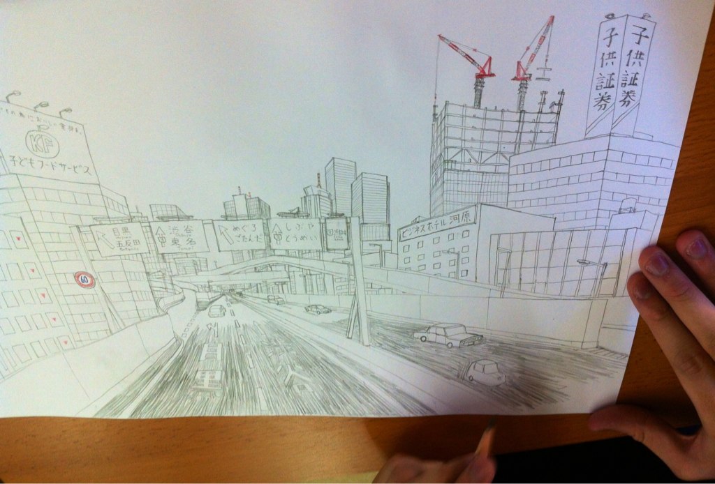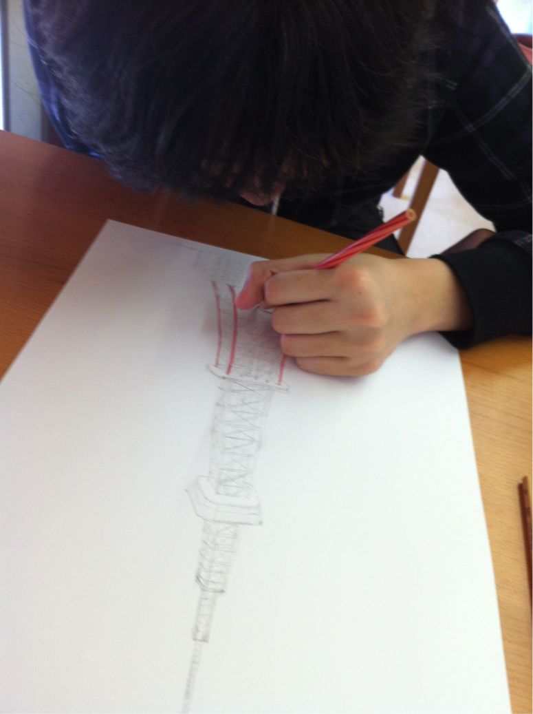 6年時の東京旅行をきっかけに新宿のビル群を描くように。現在は世界中のタワーや